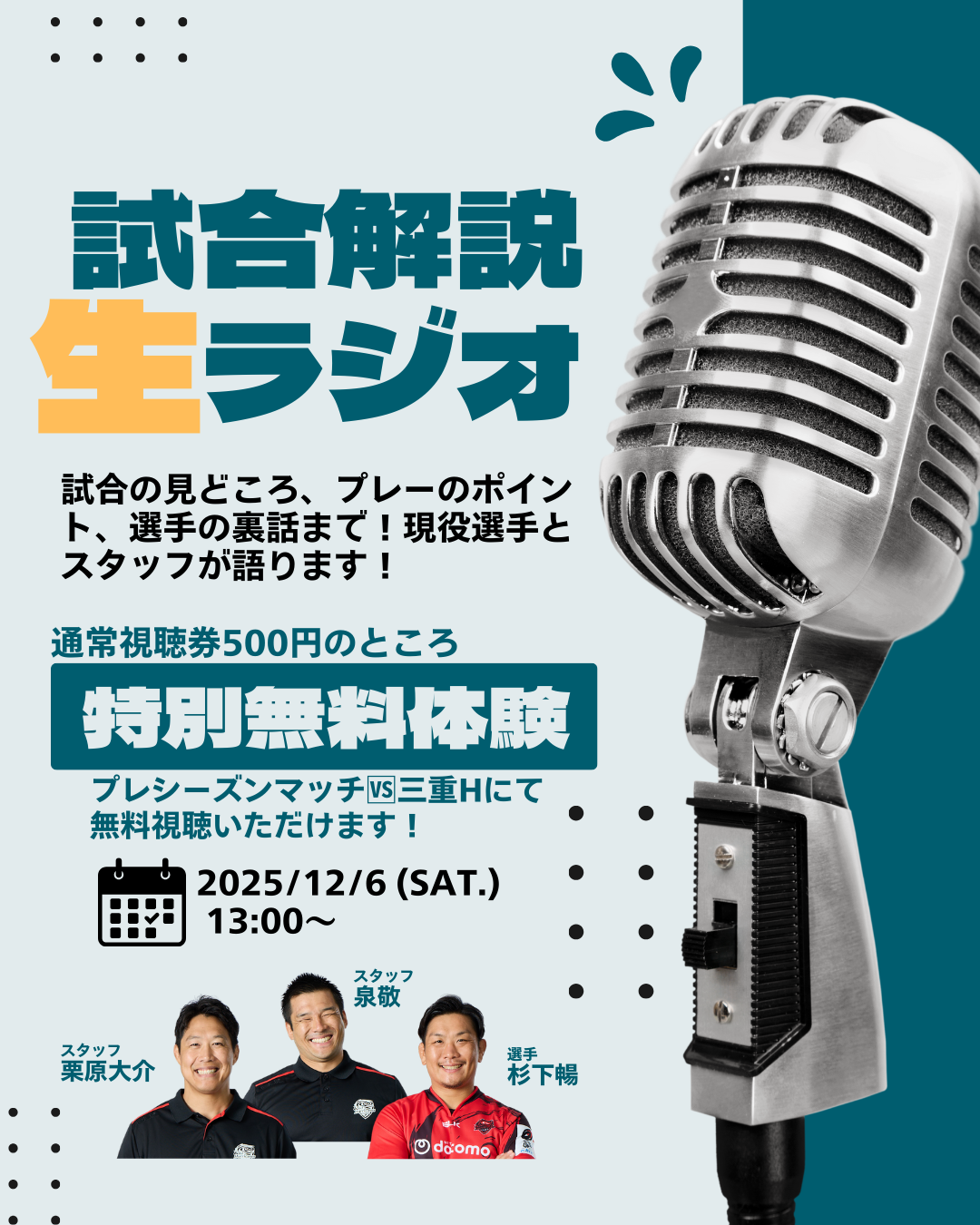 昨シーズンご好評いただき、今シーズンも実施が決定している試合の解説インターネットラジオ!